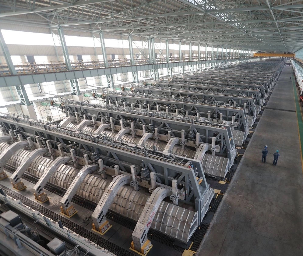 中國宏橋原鋁生產全部采用電流強度為400KA以上的大型陽極預焙電解槽。其全球首條全系列600KA特大型陽極預焙電解槽于2014年12月投產運行,具有單槽容量最大、噸鋁投資最少、液態鋁質量最好、能耗最低、生產環境最優、自動化程度最高、用工最少的優勢,在2015年6月5日通過了中國有色金屬工業協會科技成果評價,整體技術達到了國際領先水平。